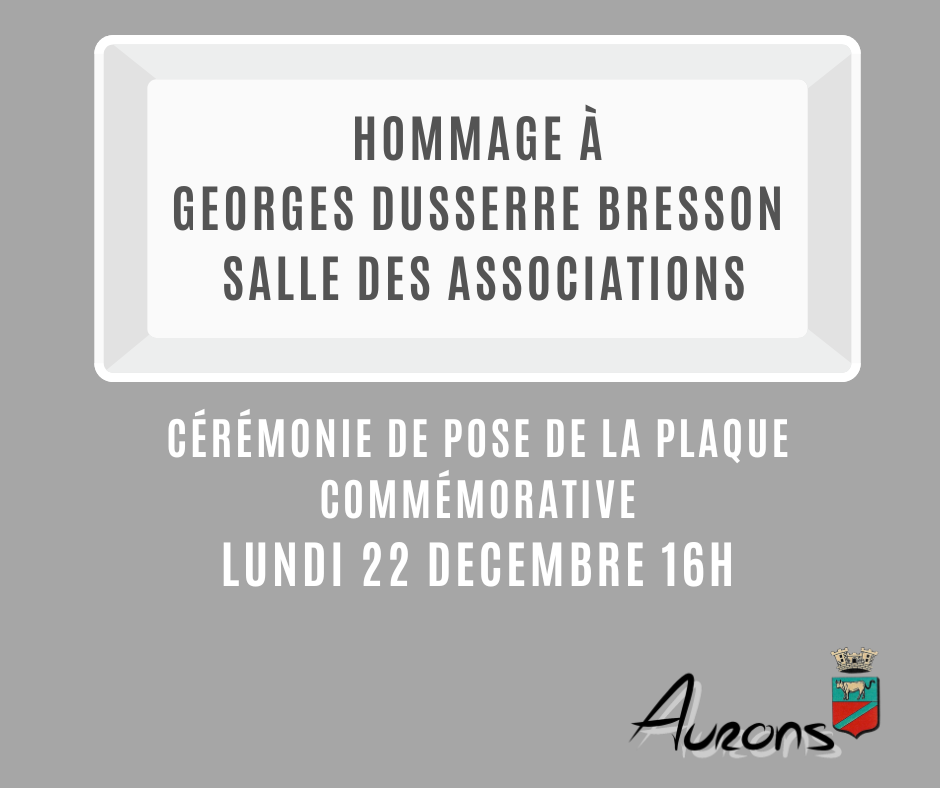 Lundi 22 décembre pose plaque commémorative en l’honneur de Georges Dusserre Bresson à la salle des associations.