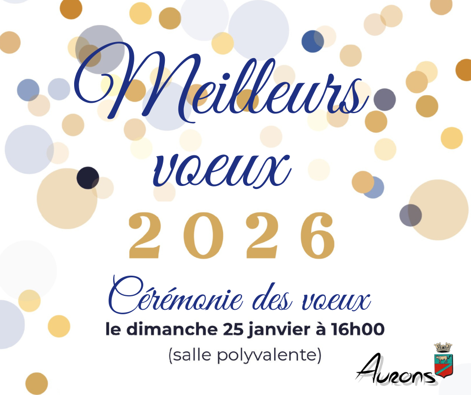 Dimanche 25 janvier à 16H00 Cérémonie des vœux, salle communale d’Aurons